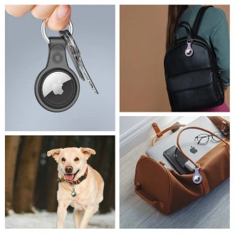 Beskyt din AirTag med denne holder i silikone som har en nøglering, er lavet i en rigtig god og kraftig kvalitet. - Farve: sort - Med en nøglering så du kan sætte den fast i tasken, et nøglebundt eller lignende - Giver en god beskyttelse af din AirTag - Med hul så Apple logoet kan ses ..
