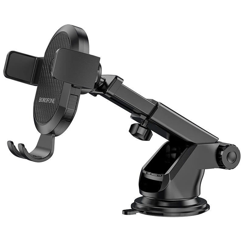 Borofone BH39 mobilholdere med instrumentbrættet. Den sættes godt fast på forruden eller instrumentbrættet med en sugekop, og telefonen klikker nemt i holderen. Sugekoppen kan genbruges og kan vaskes og genbruges efter naturlig tørring. Kontaktfladerne er dækket af et gummieret materiale, der forhindrer glidning og beskytter din telefon mod ridser. Holderen er justerbar for at give et perfekt visningsperspektiv og har en speciel udskæring, der giver dig mulighed for at oplade din telefon direkte fra holderen. Sugekoppen klikker fast på flade overflader med et tryk på en knap, hvilket skaber et solidt vakuum. Den teleskopiske arm er justerbar, giver fleksibilitet, og holderen er kompatibel med 4,5-7 tommer mobiltelefoner.