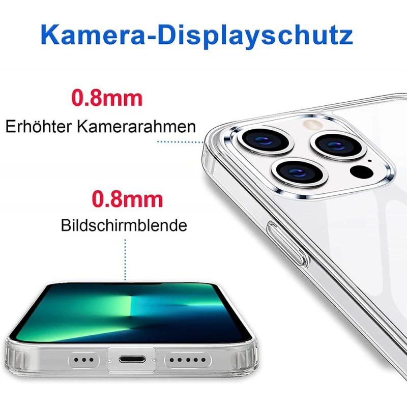 Du får her et cover som giver beskyttelse hele vejen rundt om telefonen med Kamera Beskyttlse til din iPhone 13 Pro max. Coveret er lidt højere end skærmen i top og bund, ultra tynd og lavet af blød tpu rundt i kanten med små luftpuder i hjørnerne, og gennemsigtig acryl på bagsiden så du stadig k..