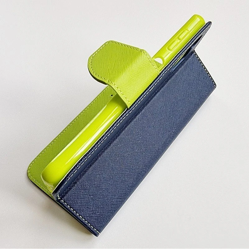 Der er 2 lommer til kredit kort og 1 til sedler. Der er lavet hul til højtaleren så du kan snakke i telefonen med coveret lukket, og desuden så kan den foldes så telefonen kan stå selv.