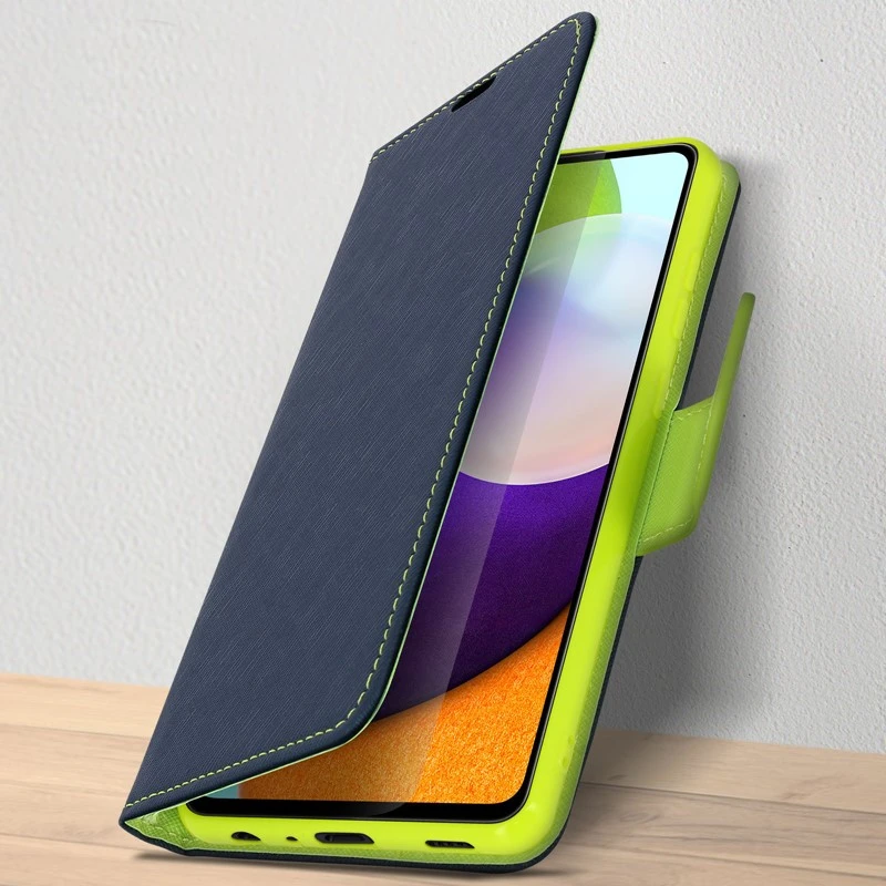 Du får her et klassisk flip cover til din Samsung Galaxy S21 FE med kort lommer og skjult magnetisk lukning. Blød pu læder cover med to indvendige lommer til kredit kort. Overfladen er meget blød og føles behageligt at røre ved. Der er lavet hul ved højtaleren så du kan snakke i telefonen med ..