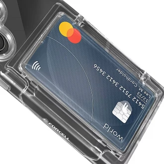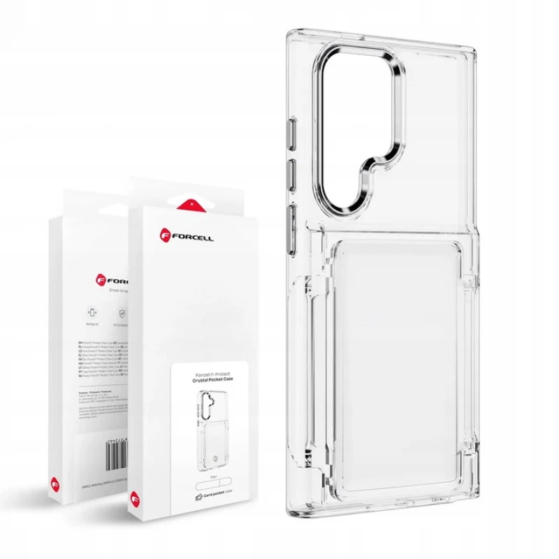 Crystal Coveret har et flot klar/gennemsigtig design, der giver dig mulighed for at bevare din enheds originale udseende. Dekorative knapper og en sølvramme rundt om kameraøen giver den en unik karakter., med en praktisk lomme , som kan bruges til kort, biletter eller lign.