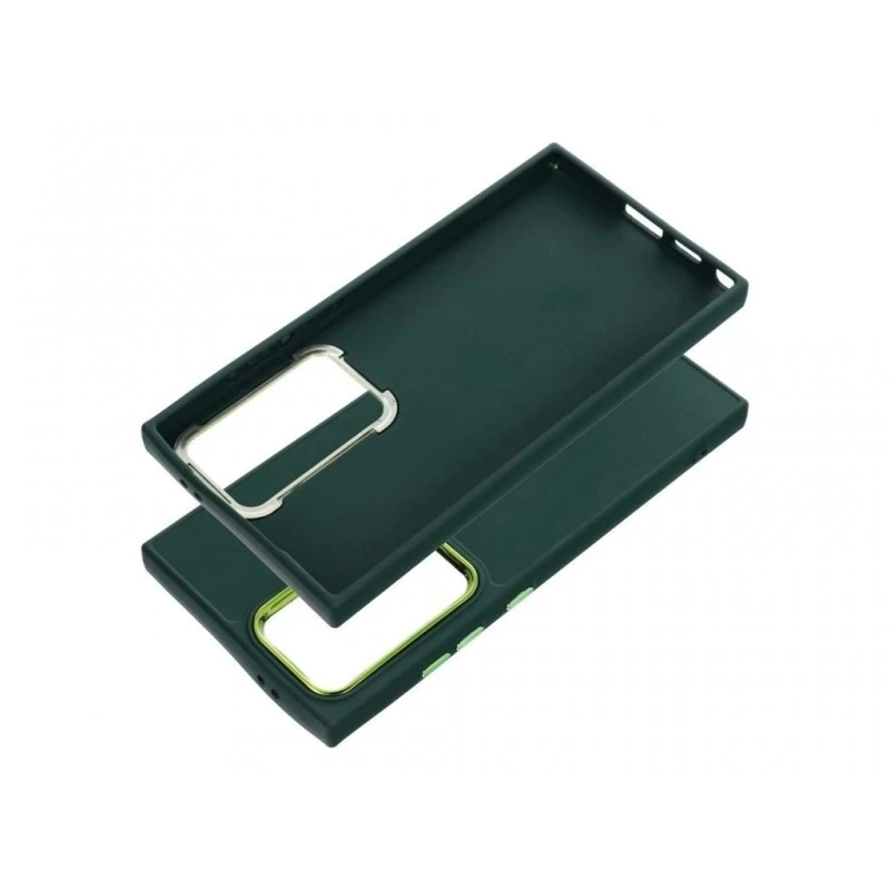 Frame coveret er et elegant og praktisk tilbehør til din SAMSUNG Galaxy S24 Ultra. Den har forstærkede kanter, blødt TPU-materiale og en hævet ramme rundt om kamera-øen, lavet af PC belagt med en farvet galvanisk belægning i en nuance, der perfekt komplementerer farven på hele kabinettet. Den samme belægningsfarve bruges også til lydstyrkeknapperne.