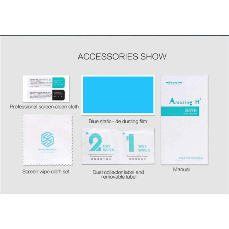 - Der medfølger renseserviet og blød klud til at rengøre skærmen med inden påsættelse af beskyttelses glasset