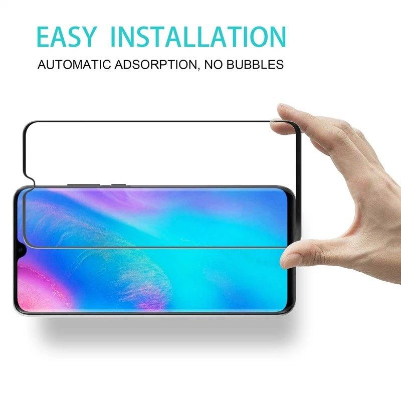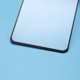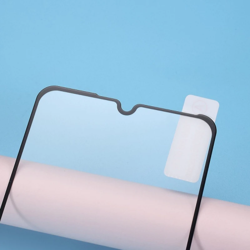 Filmen er buet i siderne og dækker skærmen ud over den buede kant, og kanterne har fået et silketryk i sort så det matcher skærmen.