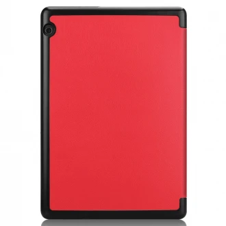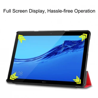 Ultra tynd smart cover med gennemsigtig bagside til Huawei Mediapad T5 10,1. Flip cover med 3 folds forcover, så din Huawei T5 10.1 kan stå selv når du skal se film osv. Indvendig er coveret belagt med en blød microfiber belægning for at undgå ridser på skærmen. Selve rammen er lavet af gennemsig..