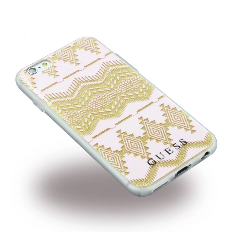 Beskyt din Iphone 6, 6S med stil med dette designer cover fra Guess, lavet af tpu med 3D effekt, beige Coveret er lavet af flere lag blød tpu som giver en flot 3D effekt. Sidder godt om telefonen, og den svag nubrede overflade gør at den ikke glider ud af hånden. Tpu..