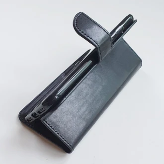 Et lækkert læder cover i flot udført design - Farve: sort - Meget tynd og let vægt - Med magnetisk lukkefunktion som holder coveret lukket - Med side flip så telefonen kan stå selv - Med en perfekt pasform som holder din telefon godt beskyttet - Materialer : PC bund & pu læder uden..