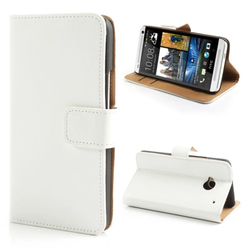Kvalitets flipcover i ægte split læder til din Htc One M7 med praktiske lommer, hvid