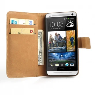 Praktisk læder cover med lommer som giver en god beskyttelse til din Htc One M7, sort Der er 3 indvendige lommer så du kan have kontanter og kredit kort med. Coveret kan foldes så telefonen kan stå selv og rundt om kameraet er coveret ekstra tyk for at beskytte linsen mod ridser og slag. Ramme..