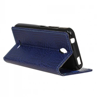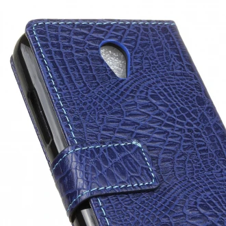 Læder cover med krokodille mønstret overflade i god kvalitet, med 2 lommer til kredit kort og en lomme til sedler. Coveret kan foldes så telefonen kan stå selv når du skal se film eller lignende. Der er lavet hul til højtaler så du kan snakke i telefonen med etuiet lukket. Ekstra kraftig rundt om kameraet for at beskytte linsen på den.