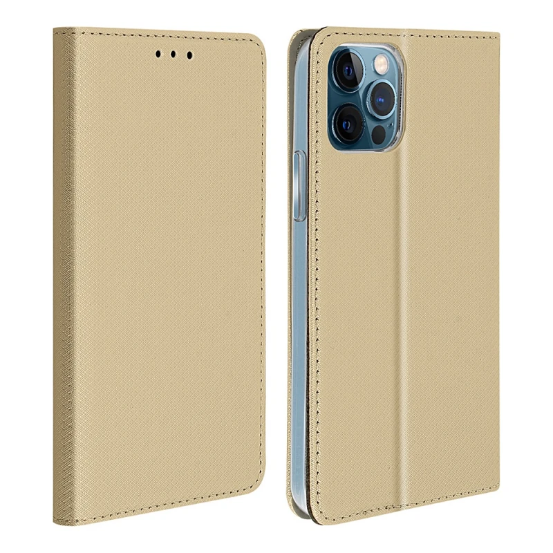 Flip cover som giver god beskyttelse og med praktiske lommer til iPhone 12 / 12 Pro. Der er 3 lommer til kredit kort og en lomme til sedler. Der er lavet hul til højtaleren så du kan snakke i telefonen med coveret lukket, og desuden så kan den foldes så telefonen kan stå selv. Rammen som holde..