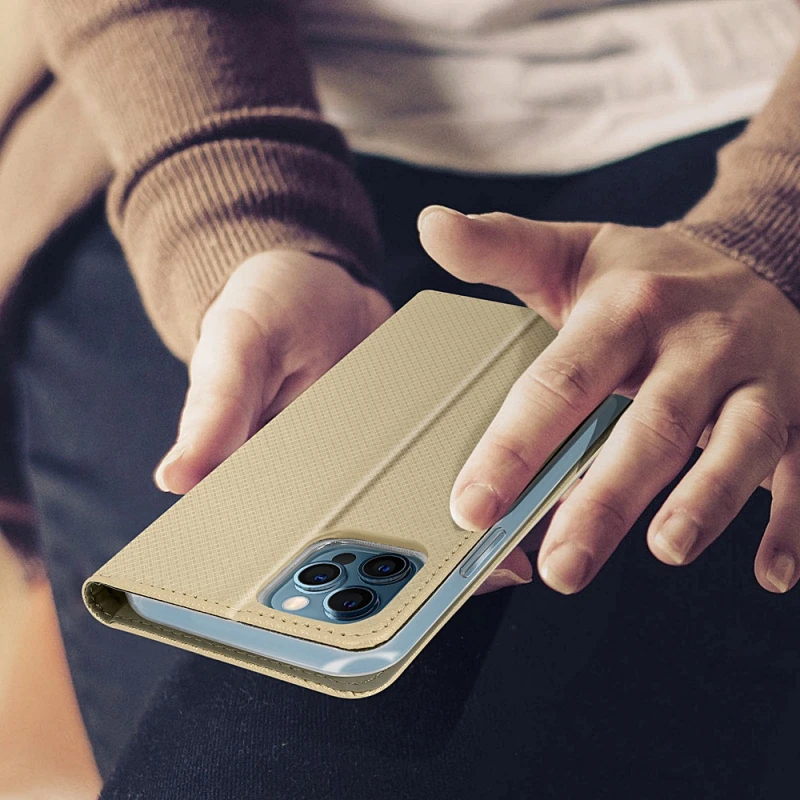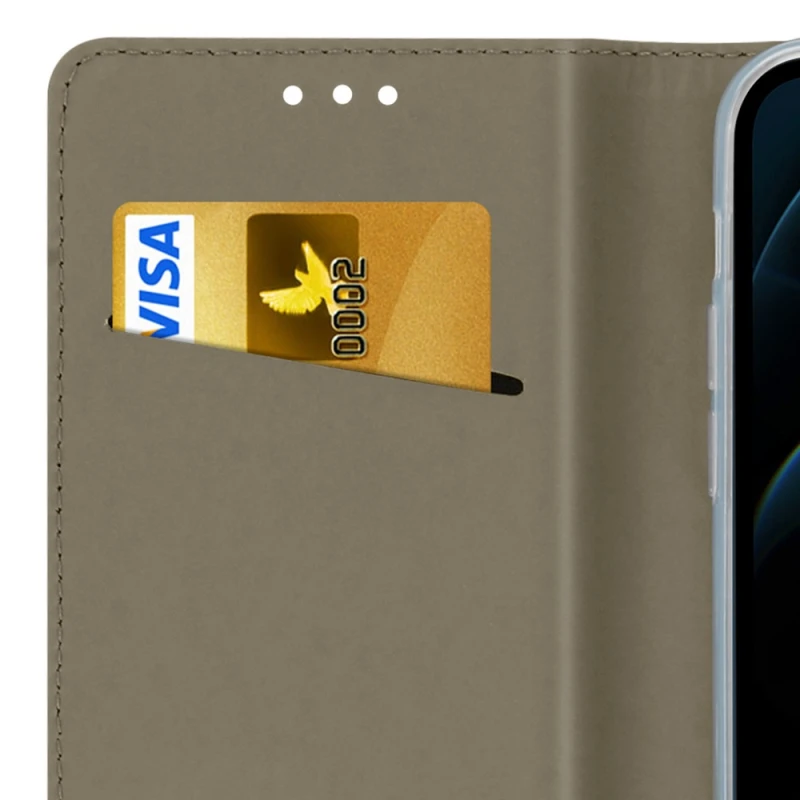 Du får her et klassisk flip cover med en kort lomme og skjult magnetisk lukning til din iPhone 12 - 12 Pro. Blød pu læder cover med en indvendig lomme til kredit kort og med microfiber indvendig for at undgå ridser. Overfladen er meget blød og føles behageligt at røre ved. Der er lavet hul ved..