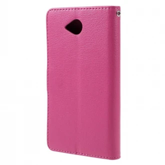 Klassisk læder pung cover i god kvalitet, som har plads til 2 kredit kort, 1 id kort og har en lomme til sedler. Med udskæring til højtaler så du kan snakke i telefonen med coveret lukket.