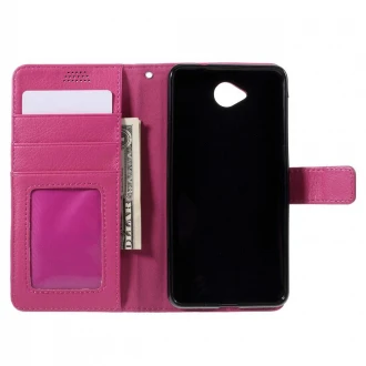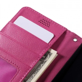 Klassisk læder pung cover i god kvalitet, som har plads til 2 kredit kort, 1 id kort og har en lomme til sedler. Med udskæring til højtaler så du kan snakke i telefonen med coveret lukket.- Farve: rød- Med dobbelt magnetisk lukkefunktion som holder coveret sikkert lukket- Med små huller i front..