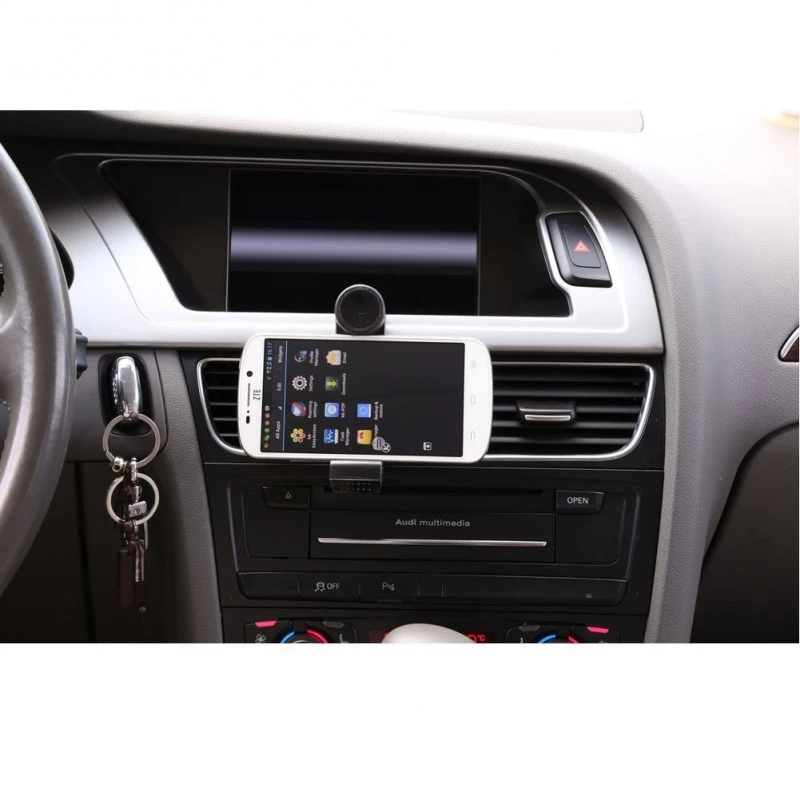 Elegant smartphone holder mini, som sidder fast i luftkanalen og kan drejes 360 grader. Udformingen gør at den kan betjenes med en hånd