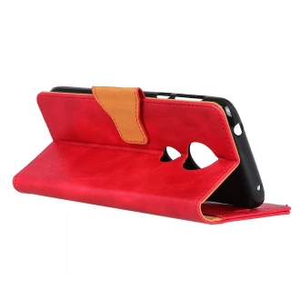 Praktisk læder cover i vintage design med lommer som giver en god beskyttelse til din Motorola Moto G6 play, rød Der er 4 indvendige lommer så du kan have kontanter og kredit kort med. Coveret kan foldes så telefonen kan stå selv og rundt om kameraet er coveret ekstra tyk for at beskytte linsen m..