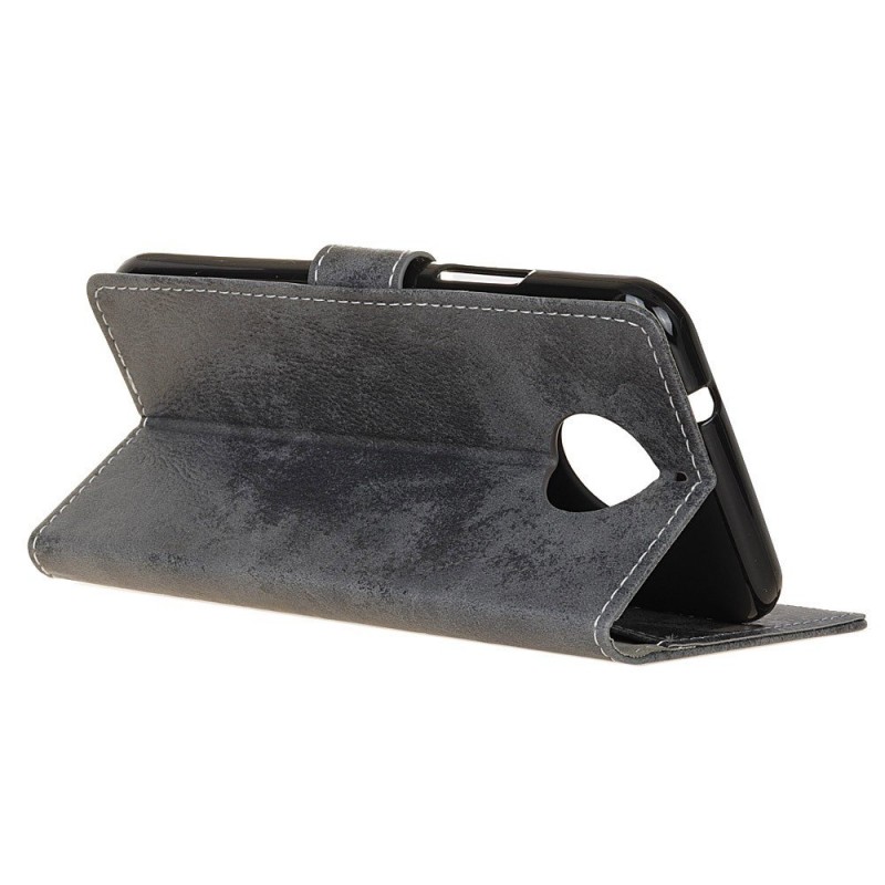 Med 2 lommer til kredit kort og 1 lomme til sedler. Coveret kan foldes så telefonen kan stå selv når du skal se film osv. Rundt om kameraet er etuiet ekstra tyk for at beskytte linsen på din Moto G5S plus mod ridser, og der er lavet hul til højtaler så du kan snakke i telefonen med coveret lukket. - Farve: grå - Med flip stand så telefonen kan stå selv (praktisk når du skal se film eller høre musik) - Med magnetisk lukkefunktion som holder coveret sikkert lukket - Med 3 indvendige lommer så du kan have kontanter og kredit kort med - Med en perfekt pasform som holder din telefon godt beskyttet - Materialer: ramme af blød tpu og etui af pu læder i super kvalitet - Overflade type: mat retro, meget blød - Dette mobilcover - etui passer til Motorola Moto G5S plus