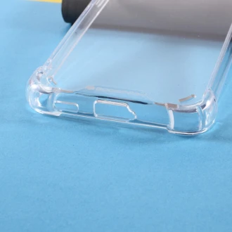 Coveret er lidt højere end skærmen i top og bund, ultra tynd og lavet af blød tpu rundt i kanten med små luftpuder i hjørnerne, og gennemsigtig acryl på bagsiden så du stadig kan se det flotte design af telefonen.