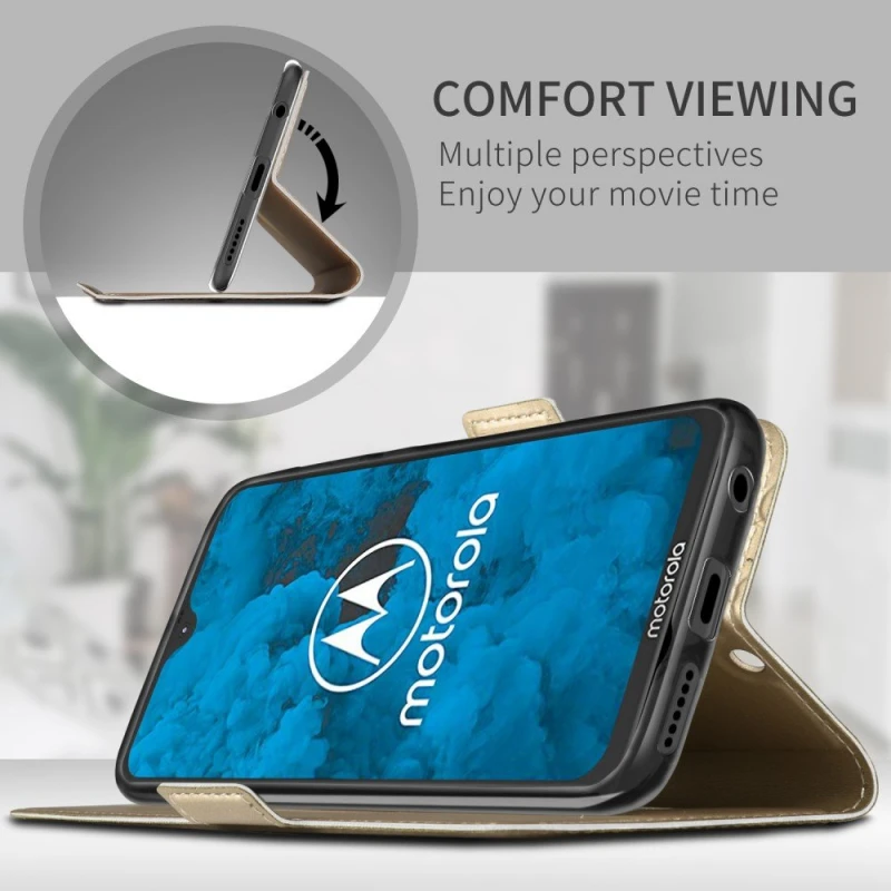 Rammen er lavet af blød tpu som er ekstra stødabsorberende ved stød og slag, og du får en god beskyttelse af din Motorola Moto G7 hvis du skulle være så uheldig at tabe den. etuiet holdes lukket med en magnetisk flap lås.