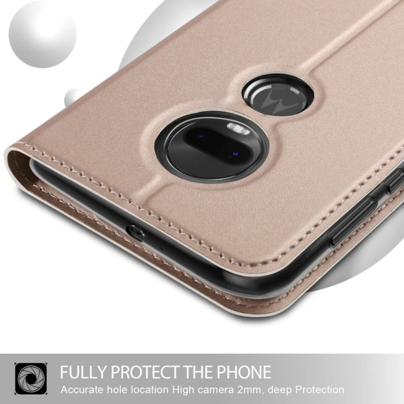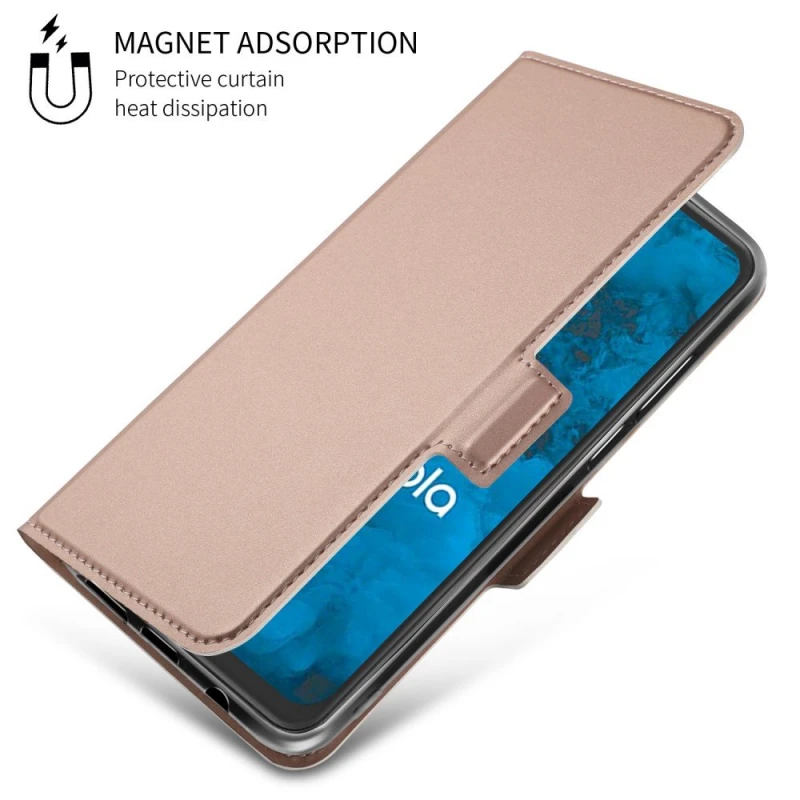 Rammen er lavet af blød tpu som er ekstra stødabsorberende ved stød og slag, og du får en god beskyttelse af din Motorola Moto G7 hvis du skulle være så uheldig at tabe den. etuiet holdes lukket med en magnetisk flap lås.