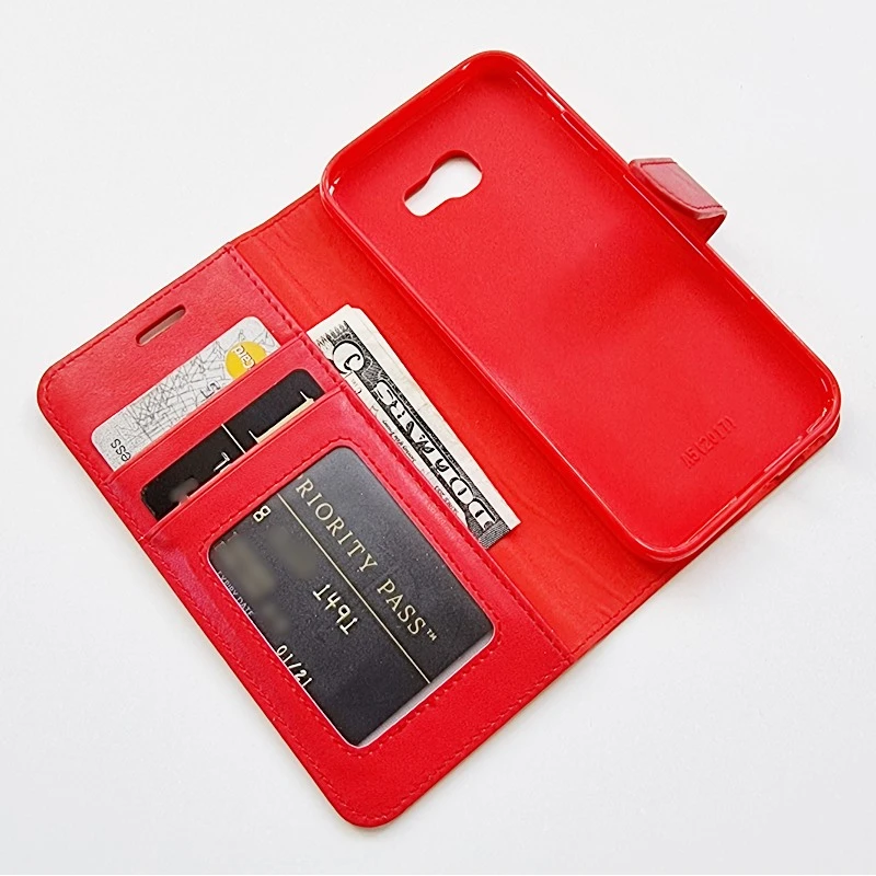 Flip cover i klassisk design til Samsung Galaxy A5 (2017) som giver god beskyttelse og med praktiske lommer. Der er 2 lommer til kredit kort hvor den ene kan bruges til ID og en lomme til sedler. Der er lavet hul til højtaleren så du kan snakke i telefonen med coveret lukket, og så kan den foldes..