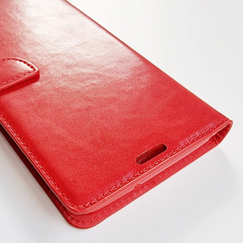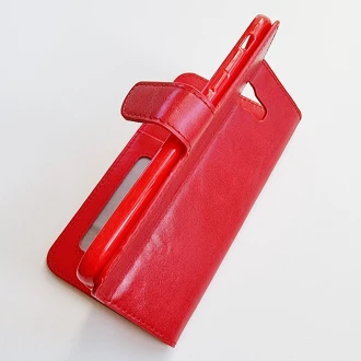 Der er 2 lommer til kredit kort hvor den ene kan bruges til ID og en lomme til sedler. Der er lavet hul til højtaleren så du kan snakke i telefonen med coveret lukket, og så kan den foldes så telefonen kan stå selv når du skal se video eller lignende.