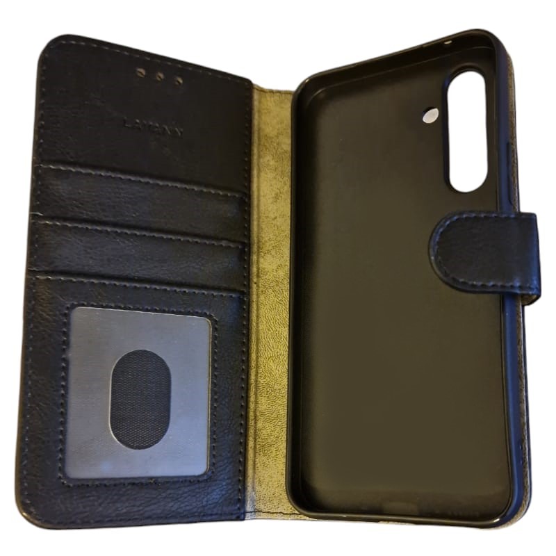 Elegant og klassisk designet cover med lommer til Samsung S24 FE. Du får her et super enkelt og flot cover til din mobil med 2 indvedige lomme til sedler/kredit kort. Etuiet er tynd og blød i overfladen, coveret indvendigt er sort, lavet af tpu som holder din mobil godt fast og beskytter mod slag..