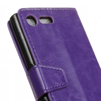 Blød læder etui – cover i vintage stil, med lommer til Sony Xperia X Compact, sort Der er 3 lommer til kredit kort og 1 lomme til sedler. Etuiet er lavet af blød pu læder, og der er små huller til højtaler, så du kan snakke i telefonen med etuiet lukket. Coveret kan foldes så telefonen kan stå ..