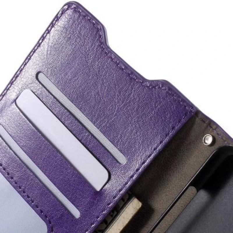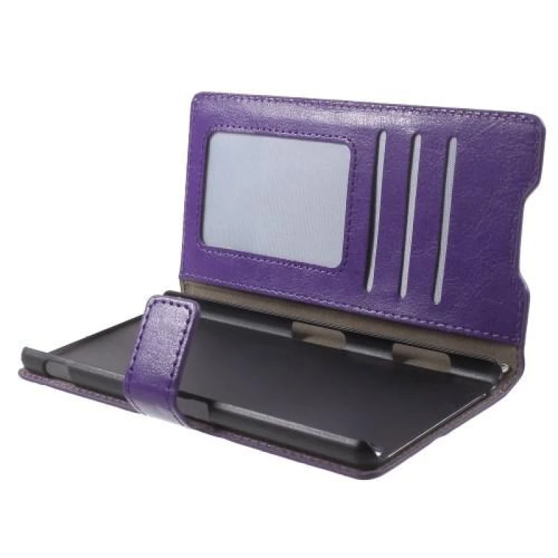 Praktisk læder cover med 3 lommer til kredit kort og 1 til kontanter - Farve: rosa- Med magnetisk lukkefunktion som holder coveret sikkert lukket- Med flip stand så telefonen kan stå selv (praktisk når du skal se film eller høre musik)- Med 4 indvendige l..